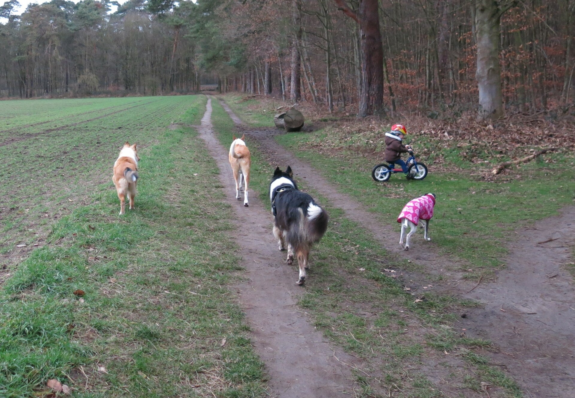 Auf Spaziergängen treffen wir regelmäßig allerlei Hunde, Große, Kleine, Alte und Junge verschiedener Rassen.